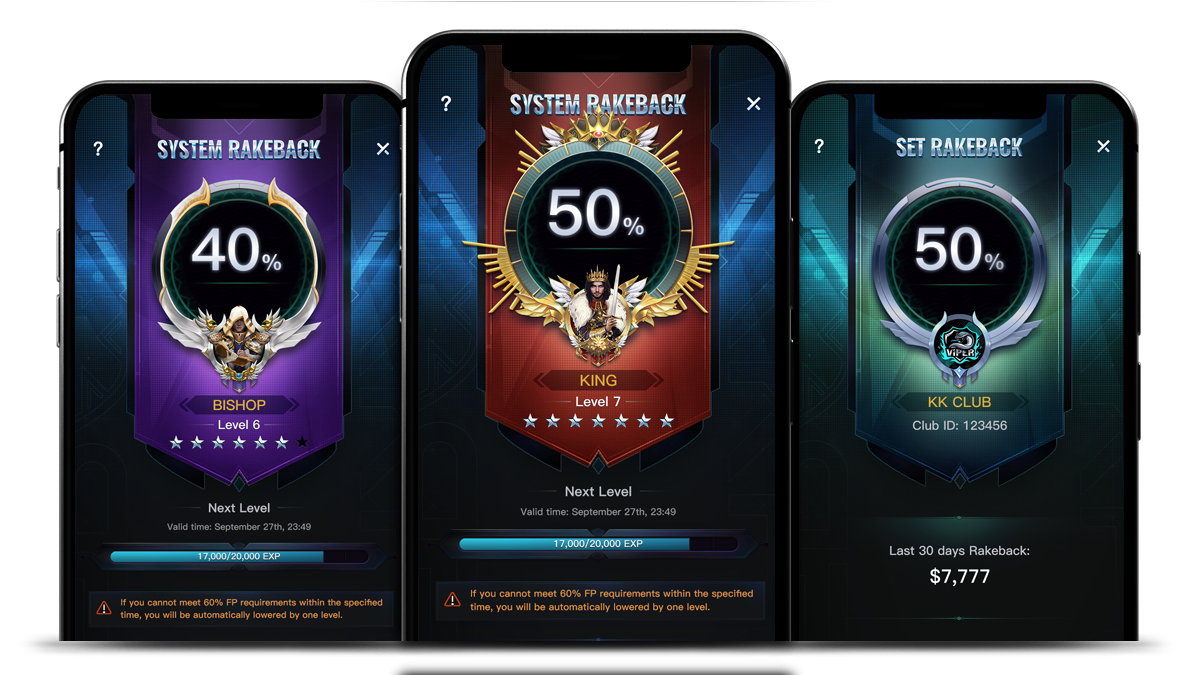 EXP grows based on fees generated in all poker game types. Every $1 paid generates 10 EXP.